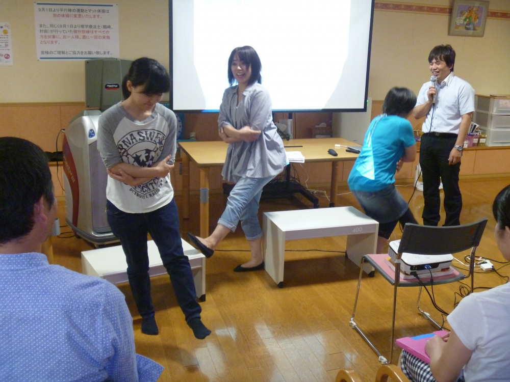 実際、20代、30代、40代の年代ごと代表に前に出てもらい立ち上がり年齢テストは、大盛り上がりでした。