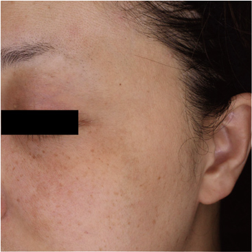 普段気づかないような薄いしみや隠れたしみ・脱色素斑・ポルフィリンなどの肌状態を詳細に見ることができ、また、治療によってどのように変化しているのかの治療経過を把握する事が可能です。