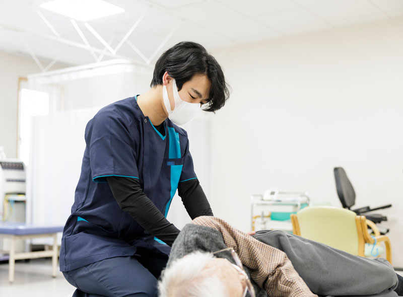 医師の指示のもと、理学療法士・作業療法士が痛みの軽減や関節可動域の改善、筋力低下や動作障害に対する専門的なリハビリを行います。医学的評価に基づいて痛みや動きにくさを改善し、快適に動けるようお手伝いします。