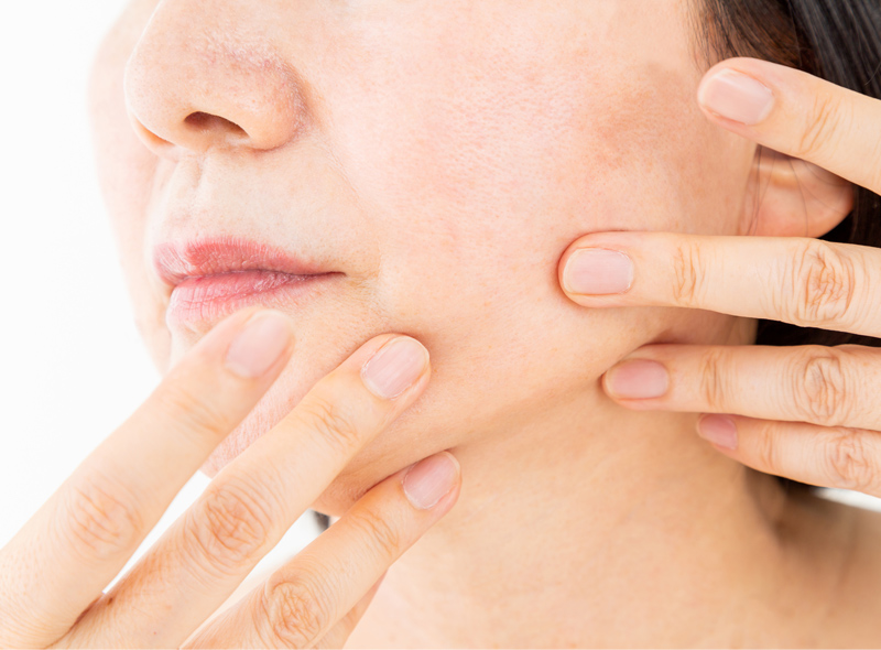 ゆっくりと進行するこのダメージは、表皮の下、真皮の中にある活性酸素や線維芽細胞などに紫外線のダメージが蓄積することで、細胞と細胞の間にあるコラーゲンが分解・減少し、細胞内のエラスチンが変性・沈着することで皮膚全体のハリと弾力を失わせます。