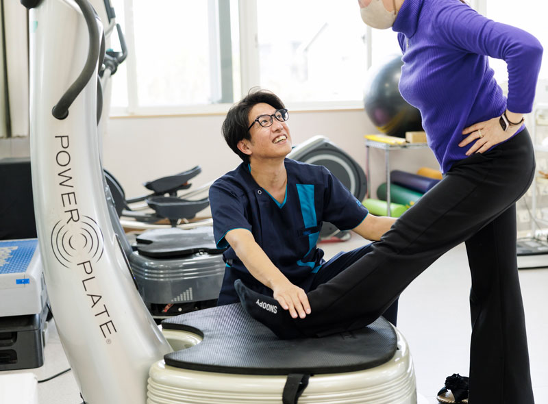 パワープレートを活用し、一人ひとりに合った個別トレーニングを理学療法士が提供することで理想の美ボディへと導きます。 また、女性は年齢とともにエストロゲンの分泌量が減少し、心臓や脳の機能の低下や骨粗鬆症、動脈硬化のリスクが増大します。適切な運動により、全身の筋力アップ、とくに骨盤底筋群や体幹筋の機能向上を図ることで、ヒップアップや尿漏れ症状の改善に繋がります。