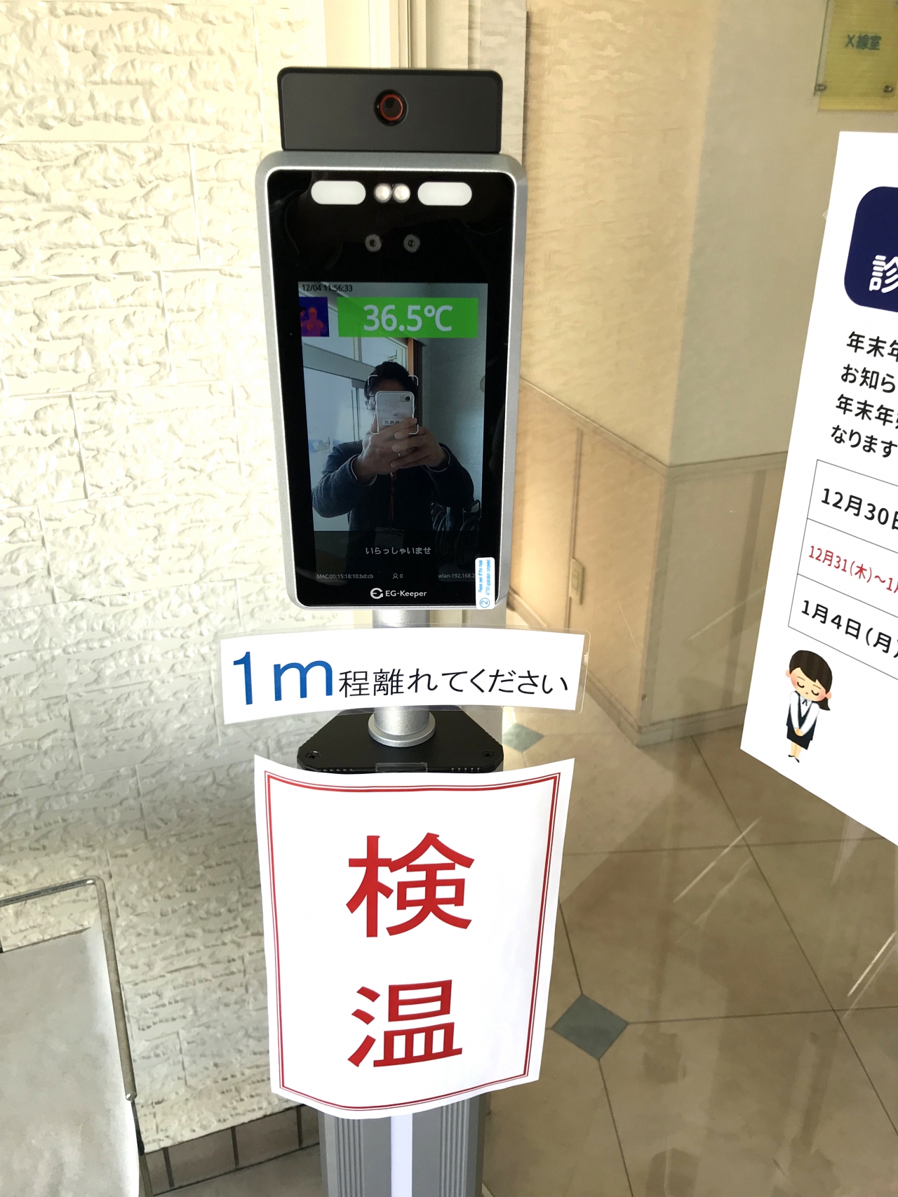 今回新型コロナウイルス対策として、新たに正面玄関入り口に自動体温測定器、施設各所に大型加湿器を追加導入致しました。