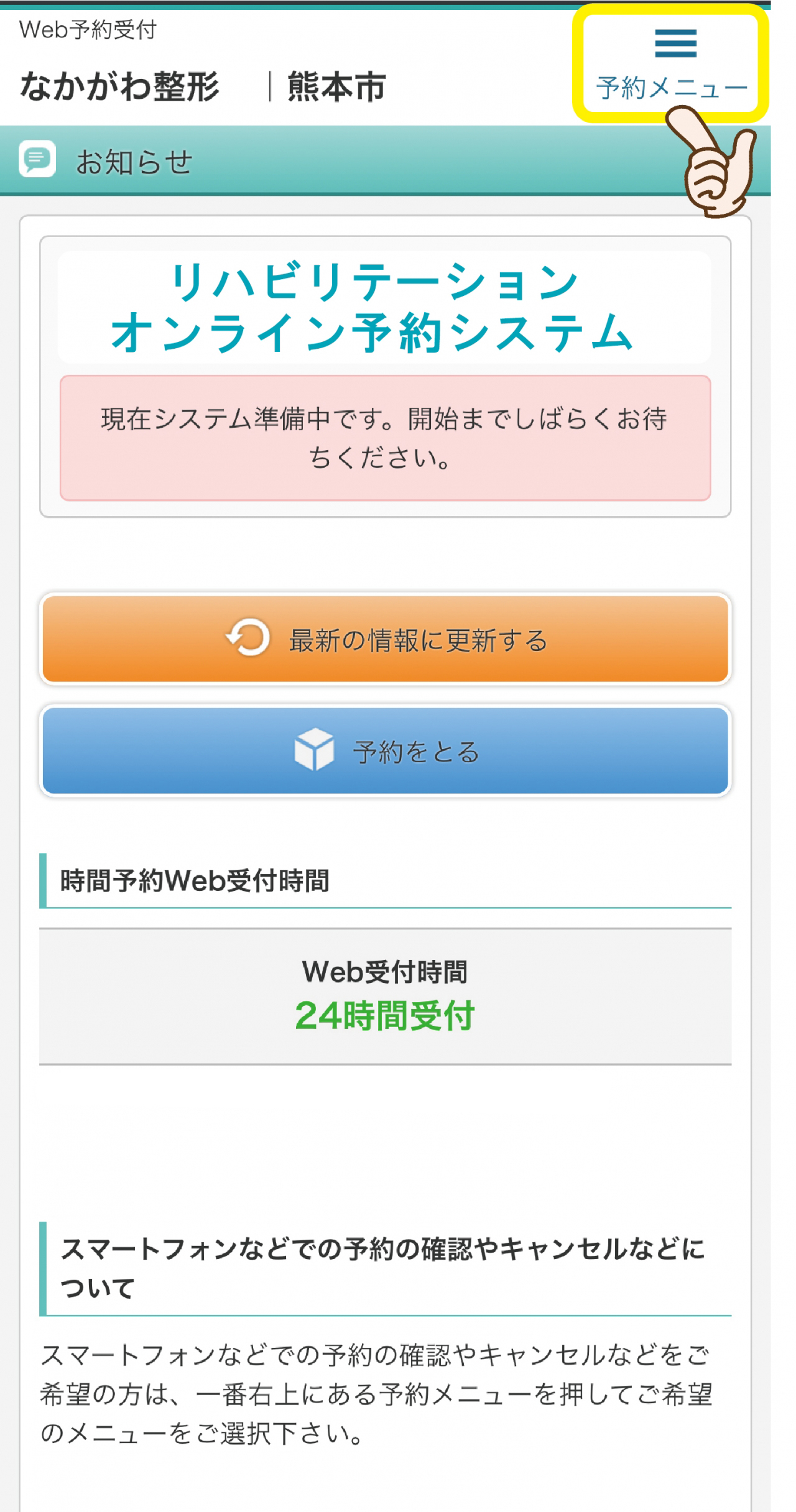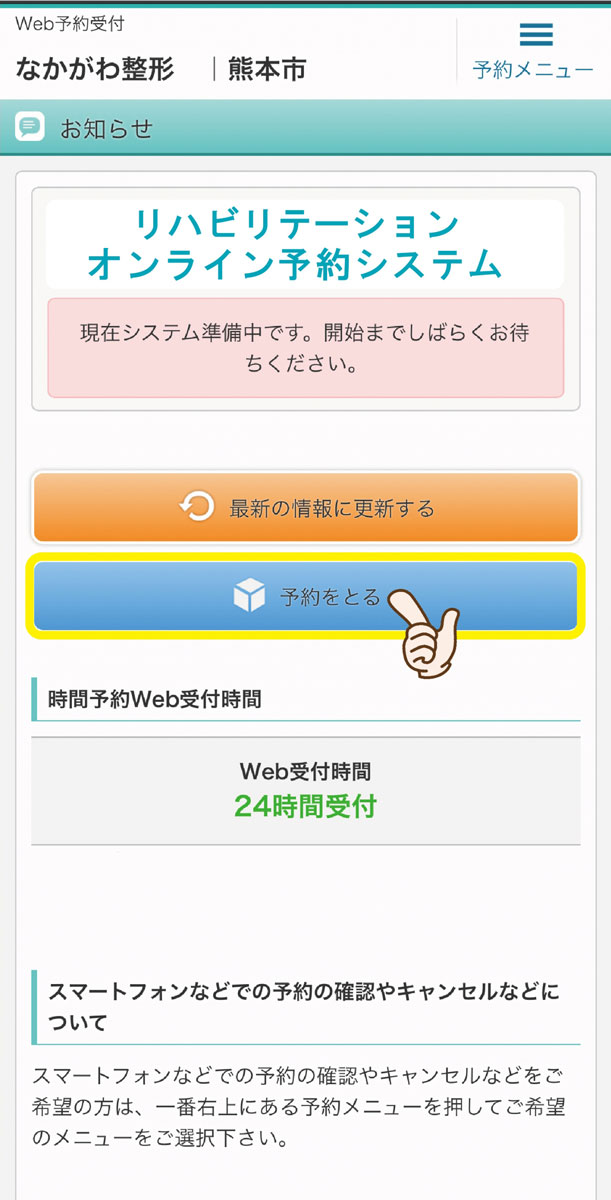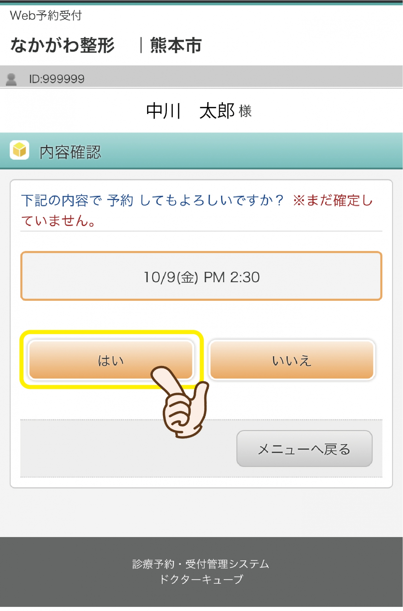 リハビリ予約時間を確認の上、【はい】をクリック。