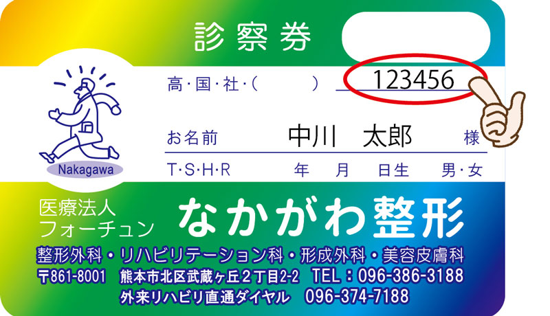 お手持ちの【なかがわ整形診察券】に記載されています患者様番号を入力ください。
