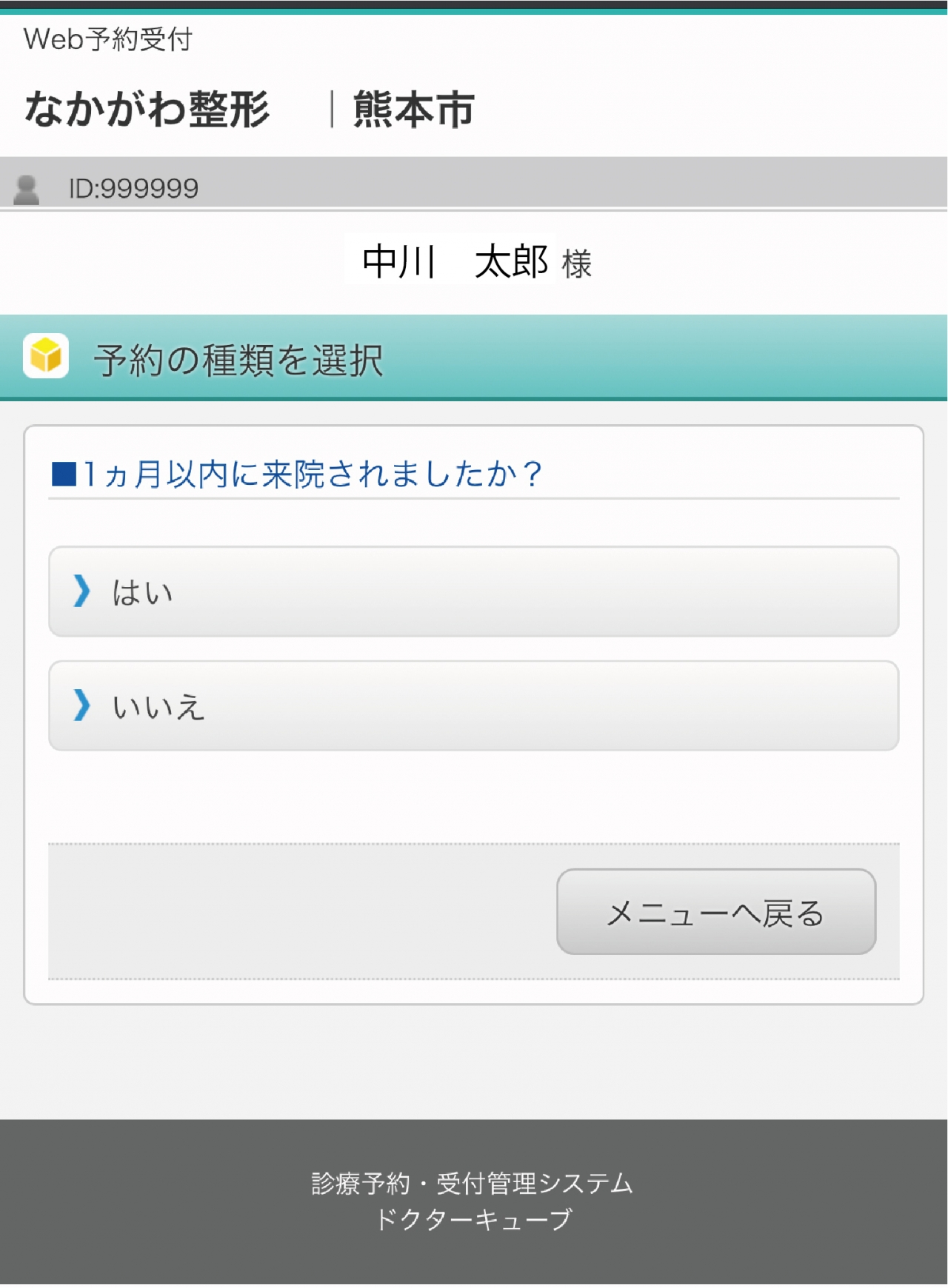 1ヵ月以内の来院がある方は【はい】をクリック。