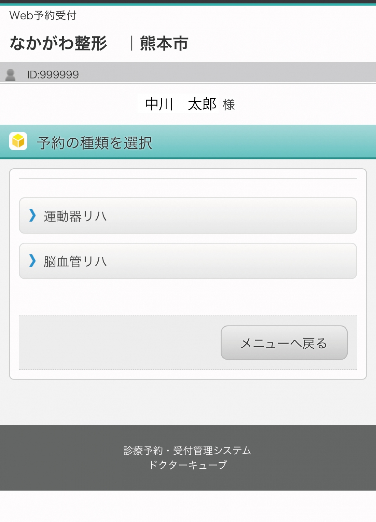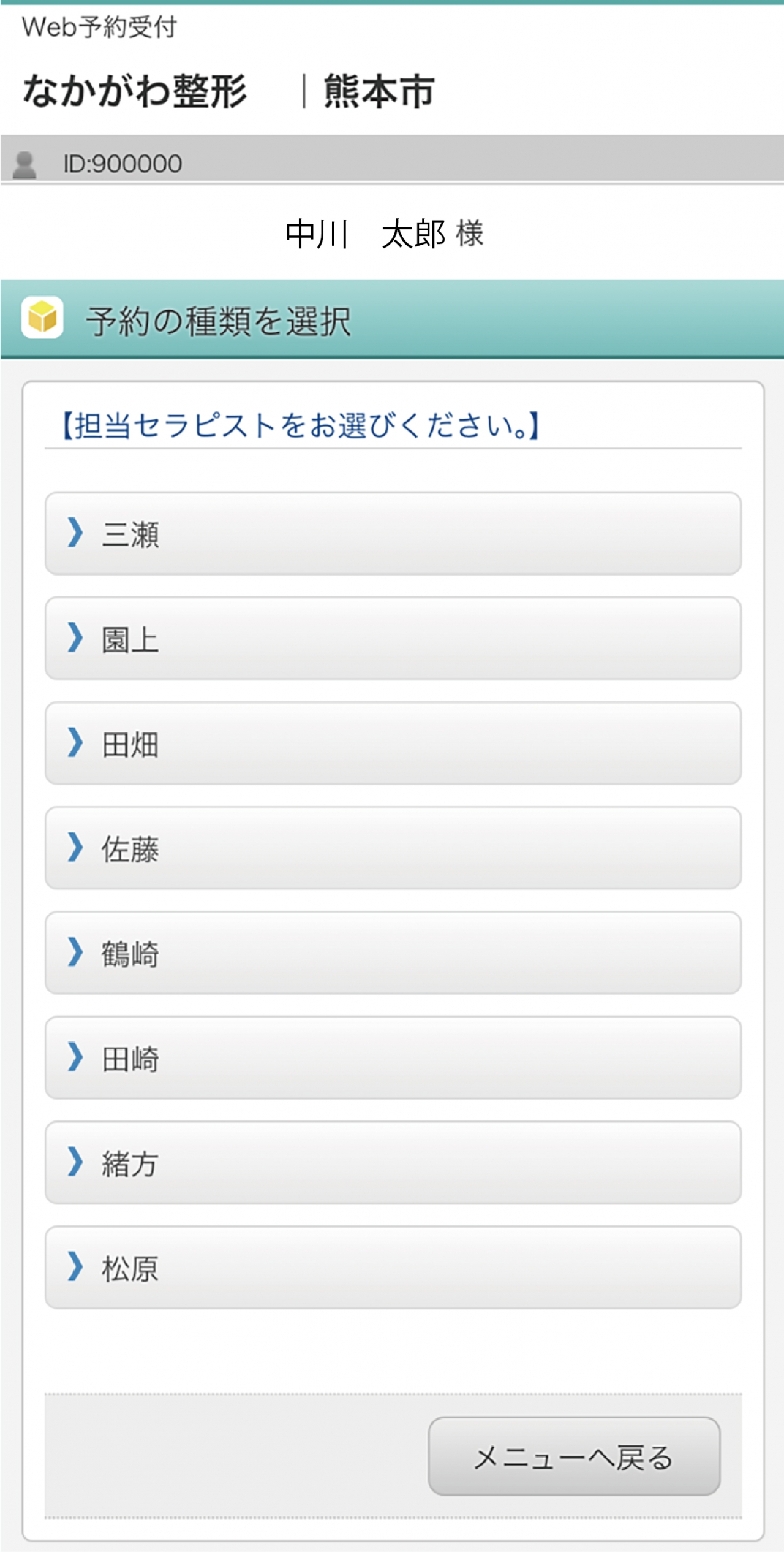 初回のリハビリ予約の説明時にお伝えしました担当セラピストを選択してください。