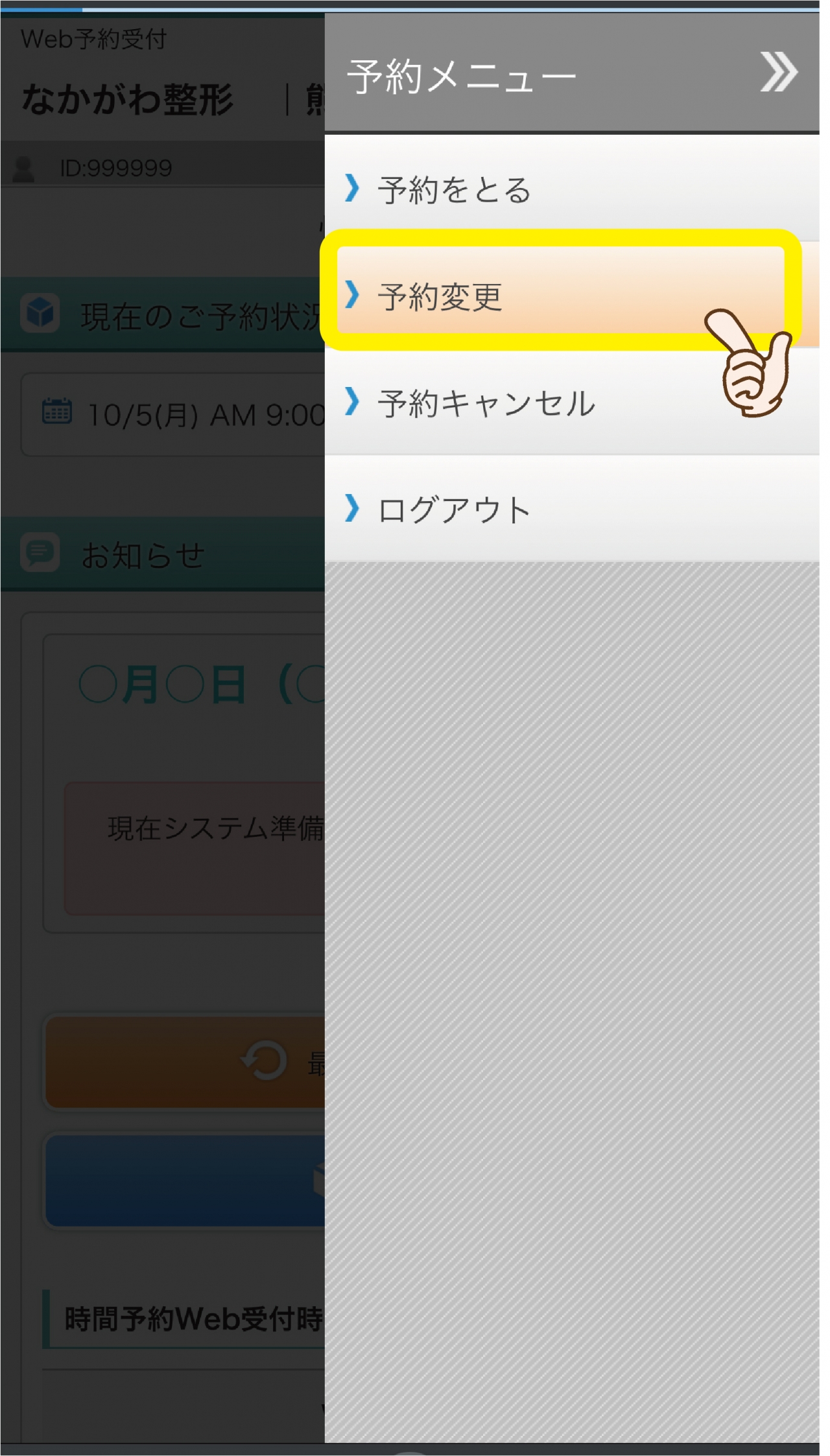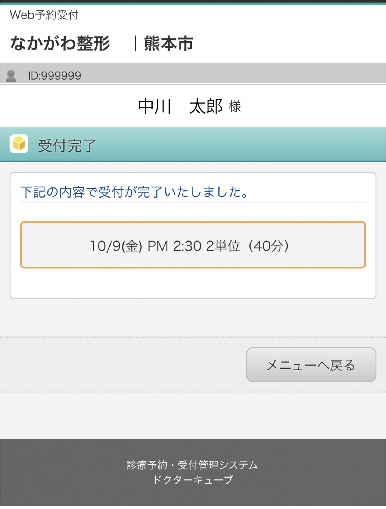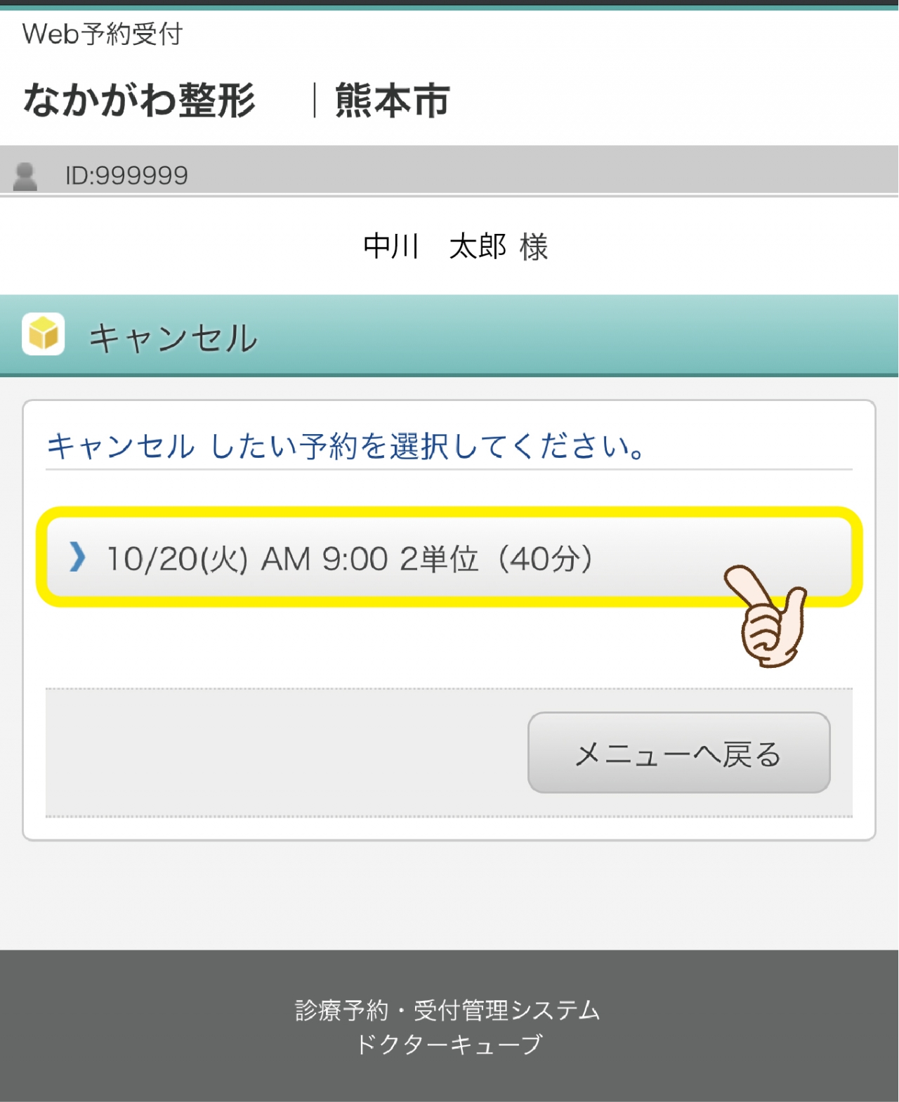 予約が確定しましたら、ホーム画面に【現在のご予約状況】が表示されますのでご確認ください。