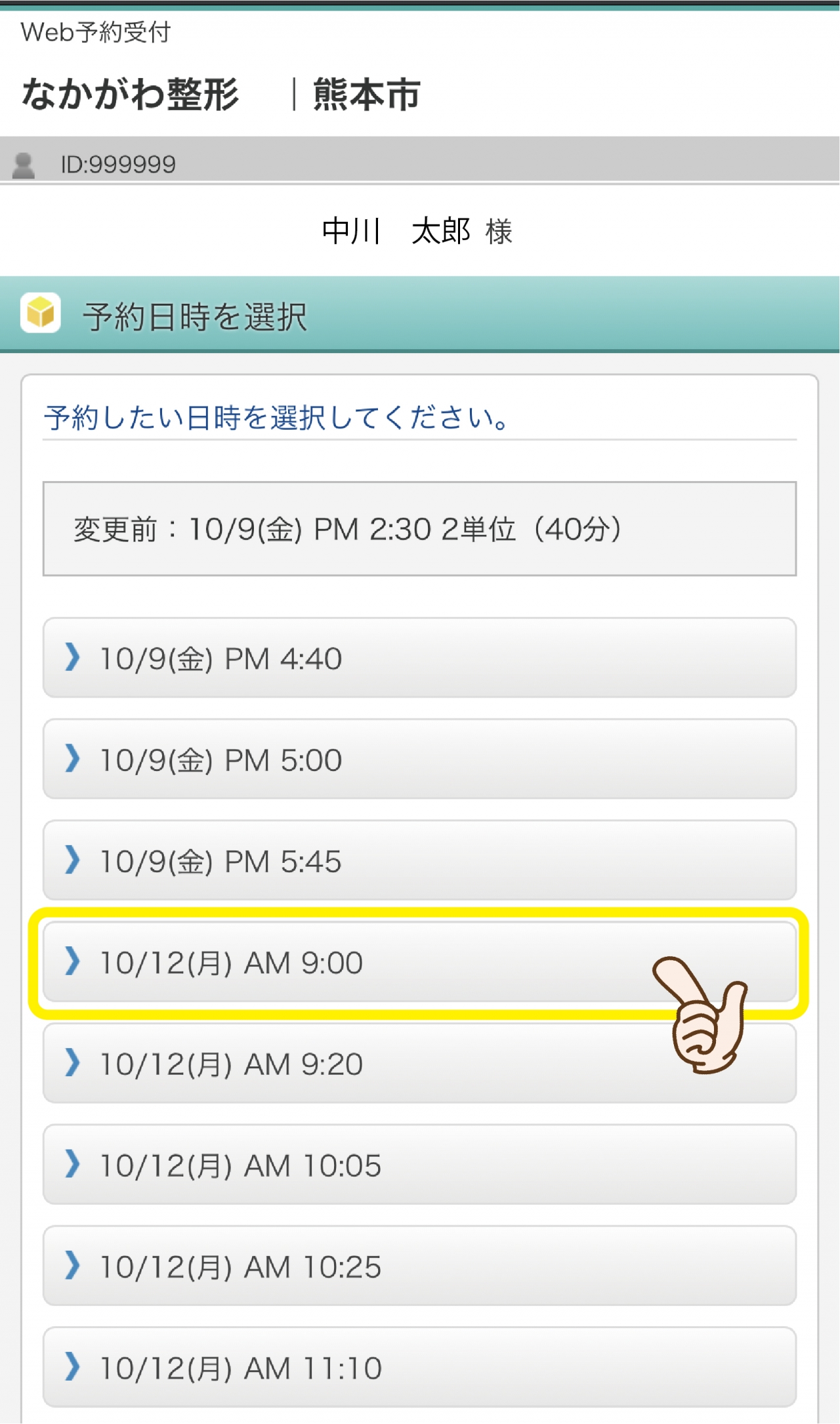 予約を変更する日時・時間を確認し、【はい】をクリック